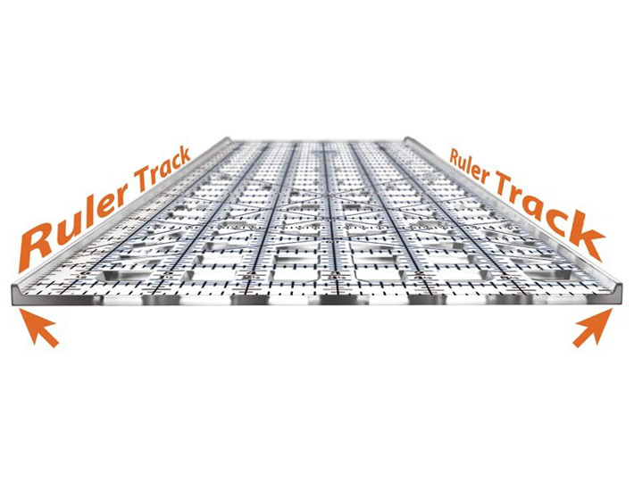 All TrueCut Rulers come with the TrueCut Ruler Track. This raised edge, combined with the guide on our rotary cutters, is what makes it possible to achieve straight, precise cuts every time. The track and guide prevent your cutter from slipping off the ruler’s edge.